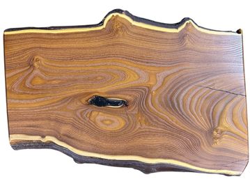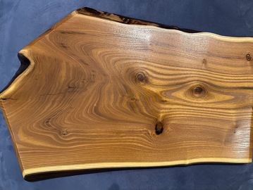 Oiled. Live edge. This piece of wood is durable enough to cut on but beautiful enough to serve your favorite Cheese and crackers