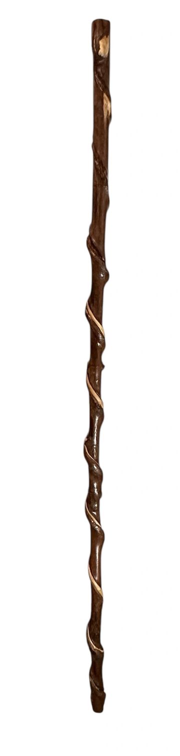 This sturdy walking stick is a maple “twisted limb” created by a vine that wrapped around it as it grew.